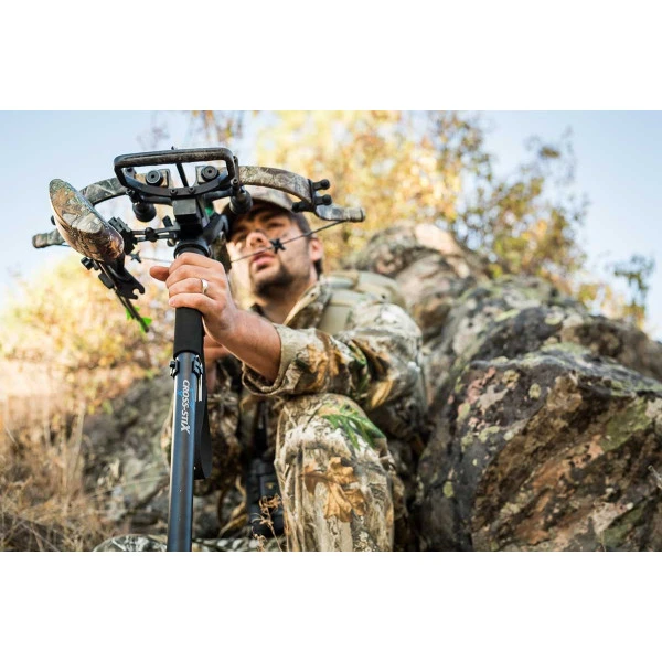 - Spécialement conçu pour les arbalètes, mais fonctionnera facilement avec des armes à feu et s’adapte aux supports de caméra