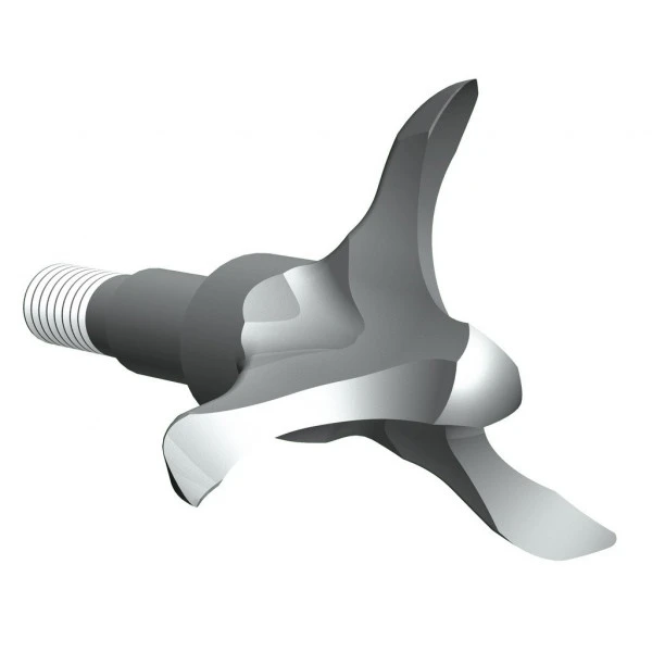 - La pointe émoussée fournit le «choc» et les lames incurvées fournissent l’action de «déchirure» qui empêche également la flèche de s’enfouir sous le sol.