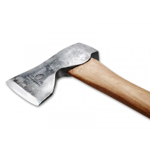 - Hache de charpentier, tranchant droit avec émouture scandinave, idéale pour les travaux de précison.