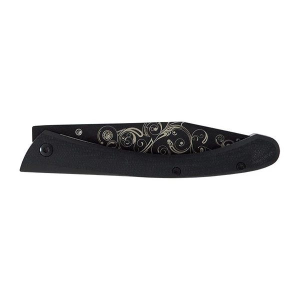 Lame gravée au laser.
