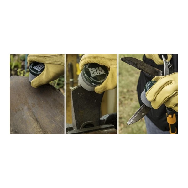 - Affûte rapidement les outils comme les hâches, machettes, lames de tondeuses, pelles…