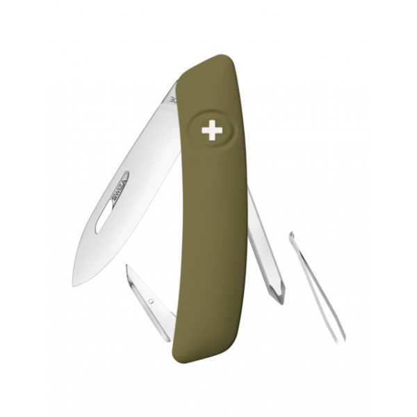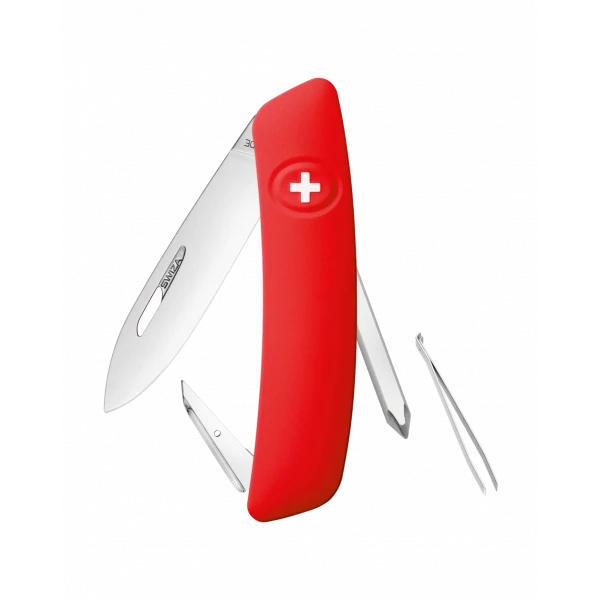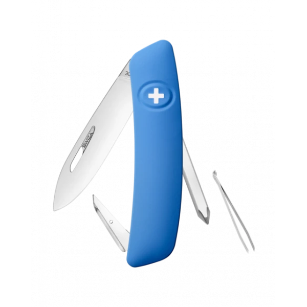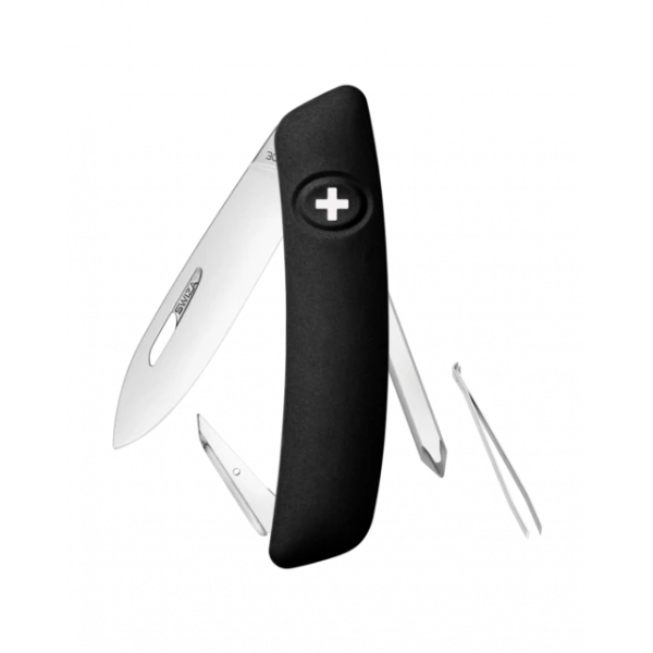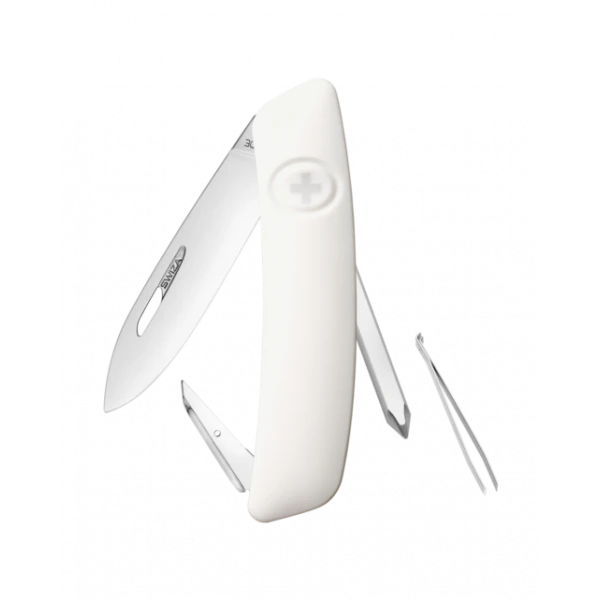 - SĂ©curitĂ©: Lame avec blocage de sĂ©curitĂ© pour lâempĂȘcher de se fermer pendant le travail. La lame se dĂ©bloque en appuyant sur la croix SWIZA.