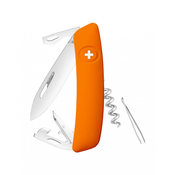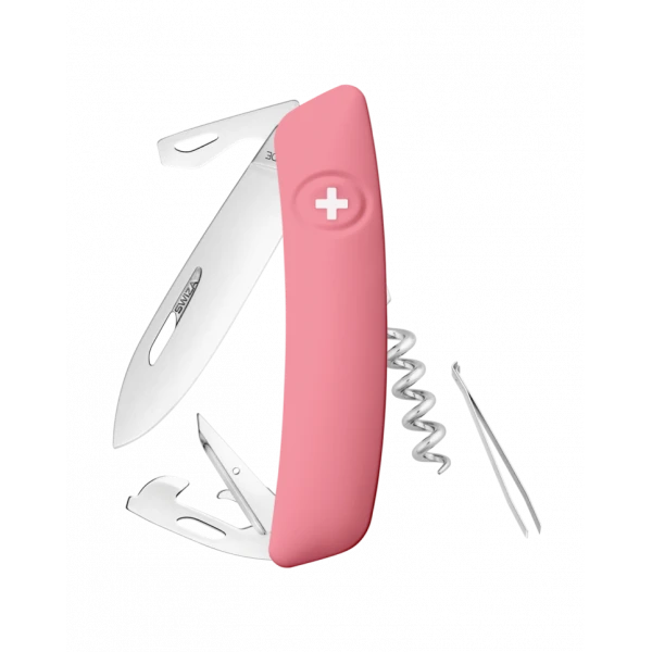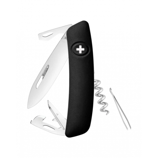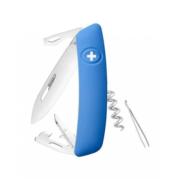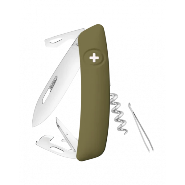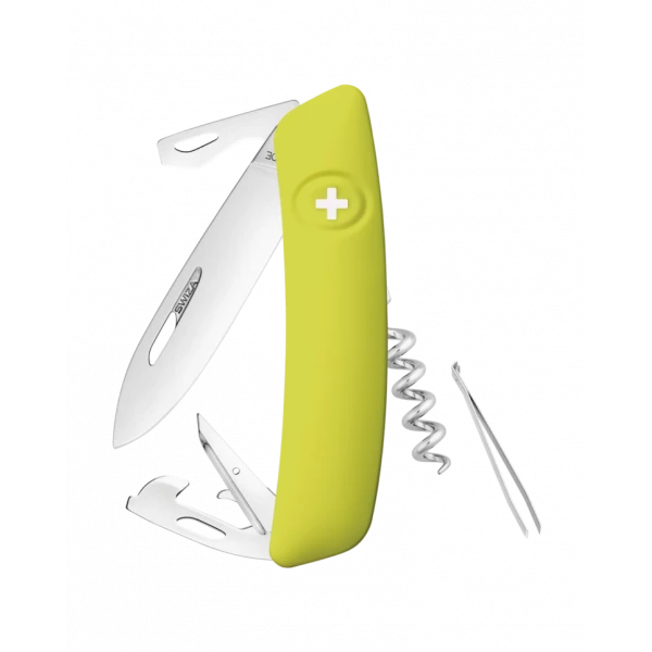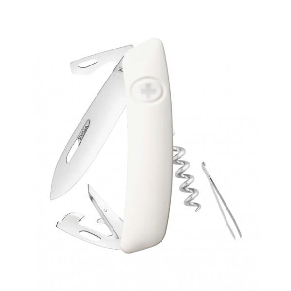 - Sécurité: Lame avec blocage de sécurité pour l’empêcher de se fermer pendant le travail. La lame se débloque en appuyant sur la croix SWIZA.