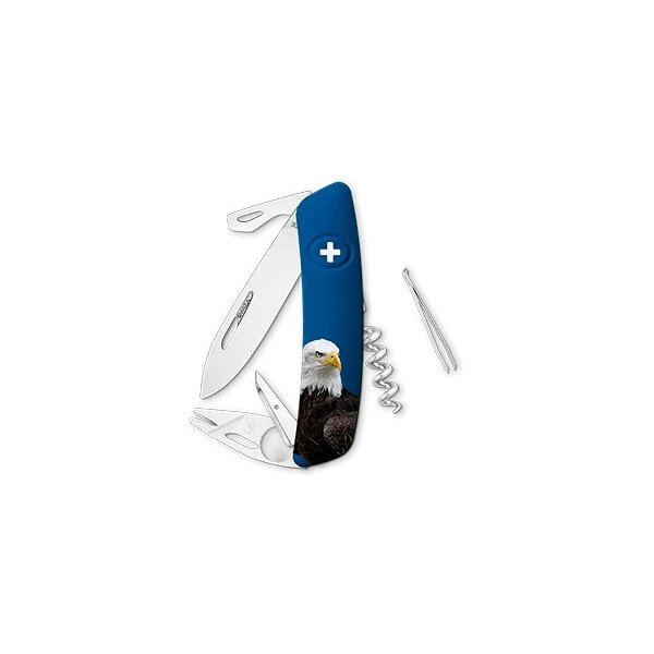 - 11 fonctions : Lame de 75mm avec blocage de sĂ©curitĂ©, AlĂȘne coupante avec poinçon, Aiguille Ă chas, DĂ©capsuleur avec un tournevis n°3 et un plioir Ă fil, Tire-tique avec loupe de contrĂŽle, Tire-bouchon qualitĂ© sommelier, Pincette.