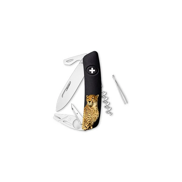 - 11 fonctions : Lame de 75mm avec blocage de sécurité, Alêne coupante avec poinçon, Aiguille à chas, Décapsuleur avec un tournevis n°3 et un plioir à fil, Tire-tique avec loupe de contrôle, Tire-bouchon qualité sommelier, Pincette.