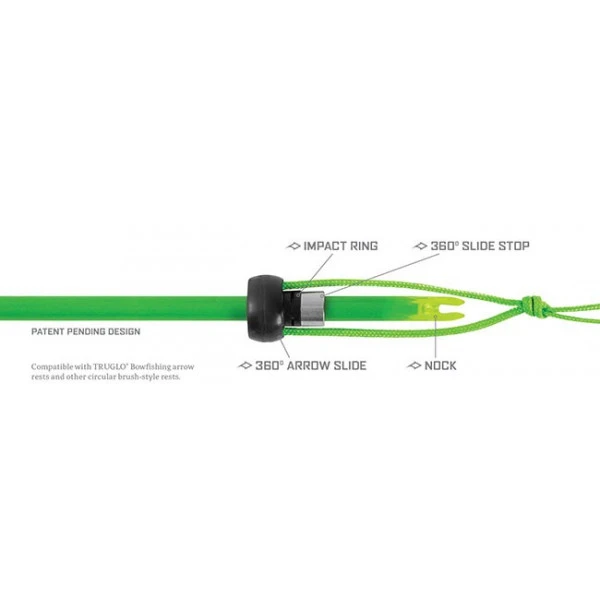 • Facile à installer sur les flèches de pêche à l’arc TRUGLO® ou d’autres marques, le système de sécurité à glissière à 360 ° vous offre un moyen sûr et facile de tirer et de récupérer votre flèche sans entraver la précision ou la puissance.
